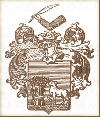 korona felett írótollat tartó kékmezű könyöklő kar alkotja. A takarók színe kék-arany